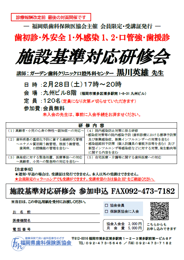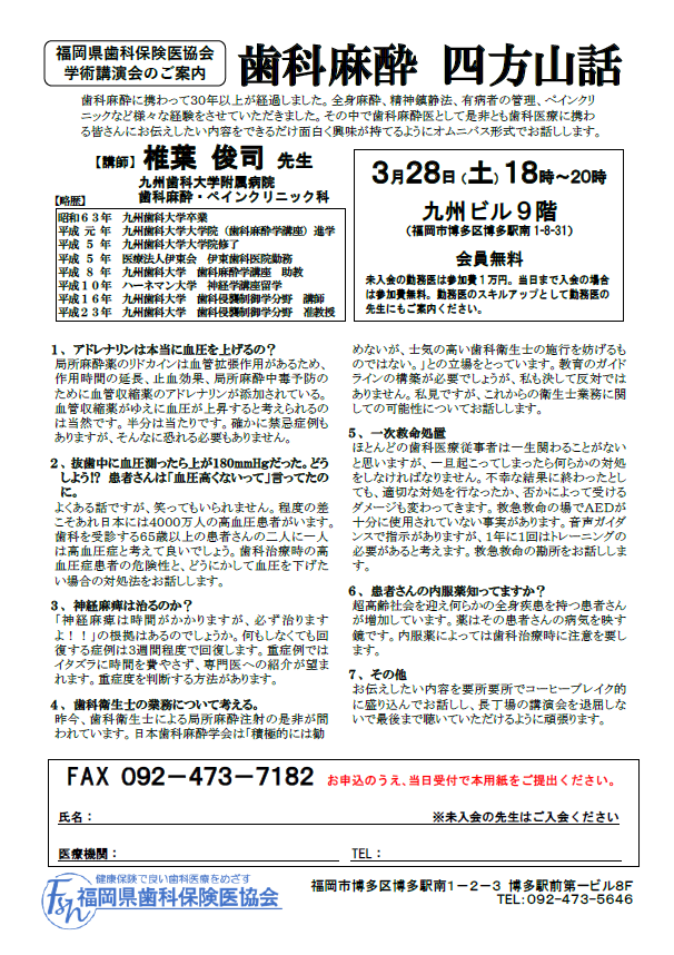 ■参加費無料:会員、会員診療所の歯科衛生士・歯科助手・事務職員