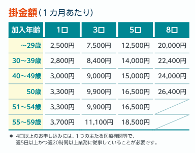- 開業医…8口 勤務医…3口 (給付額:入院1口8,000円/1日、通院1口6,000円/1日)