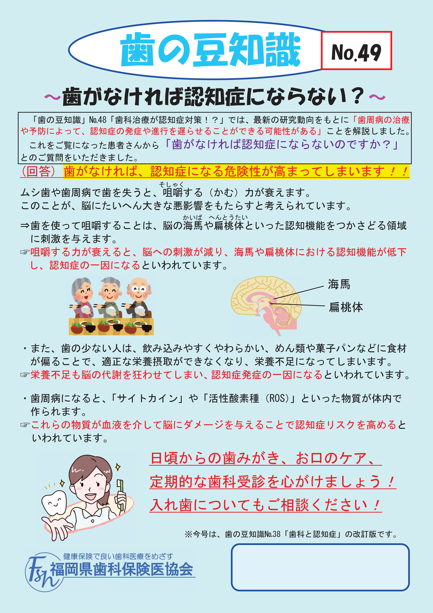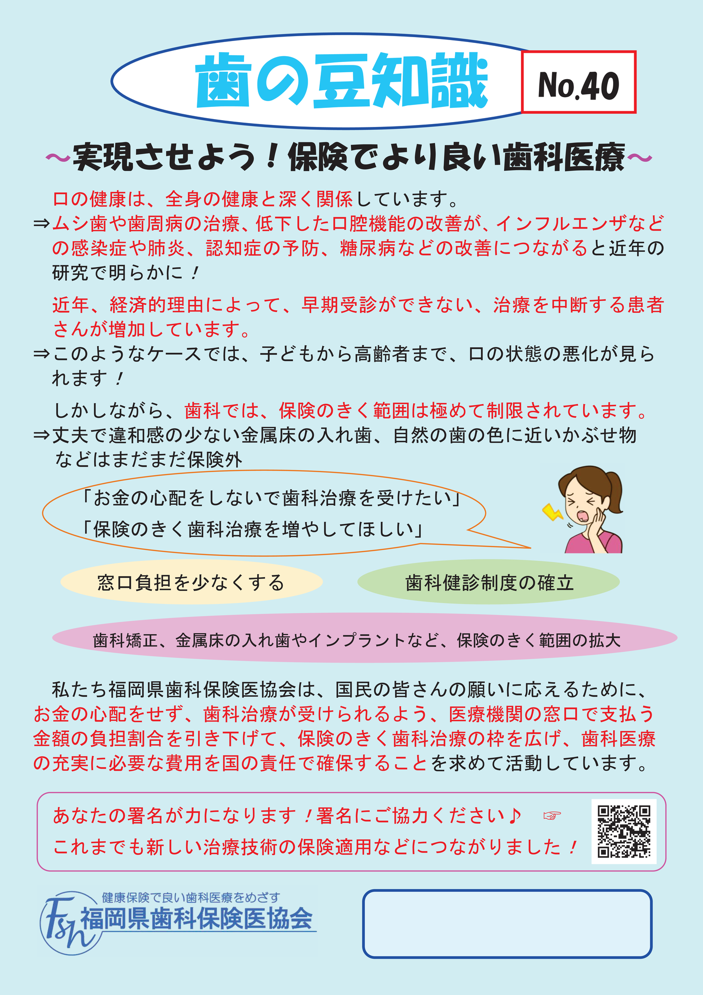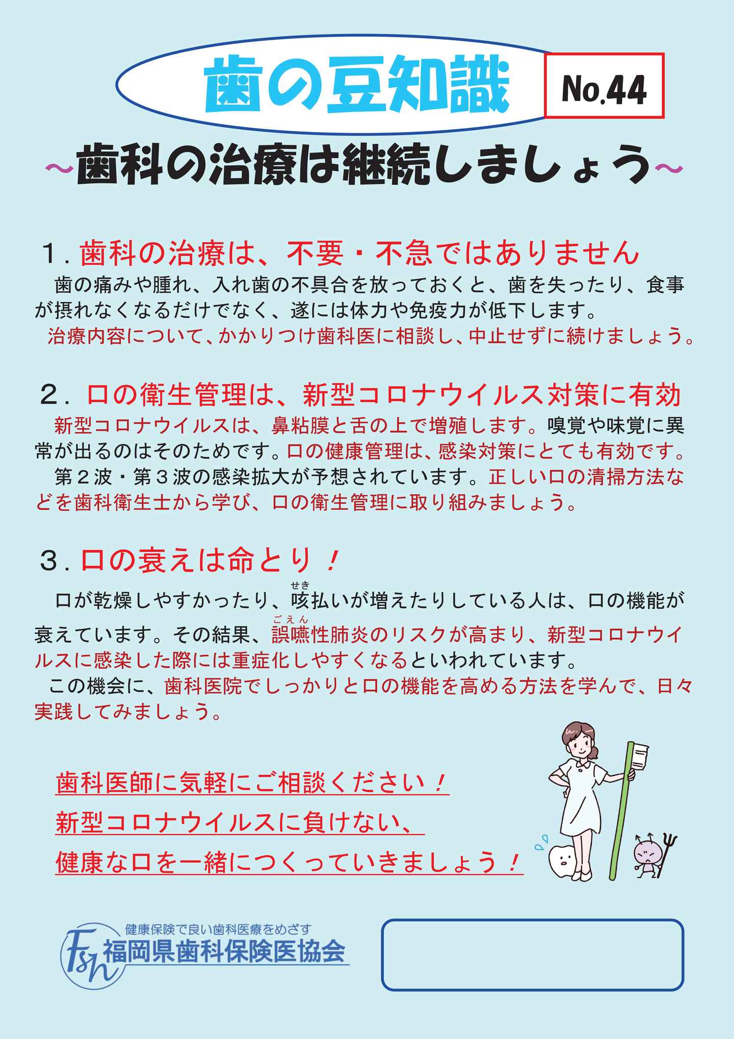 これまでの「歯の豆知識」をさらに分かりやすく編集し、冊子にまとめました。