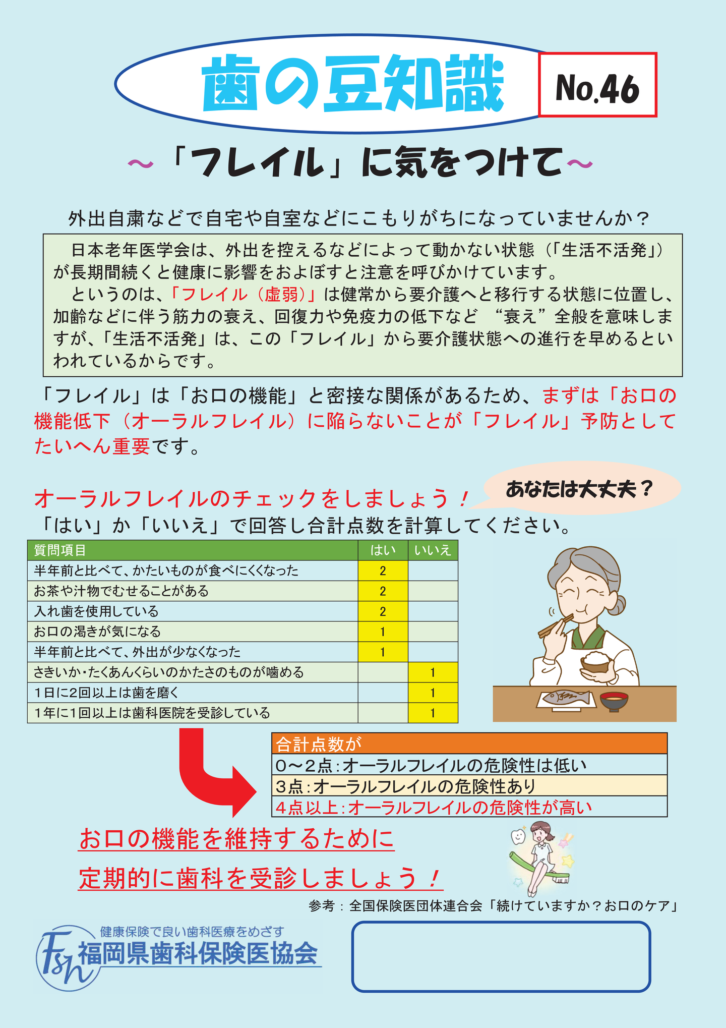 災害時のお口のケア、日頃からの対策などを、皆さまで話し合うきっかけになりましたら幸いです。