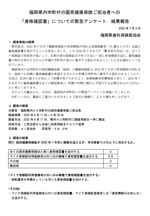 そのような観点から、当会は、福岡県内市町村への緊急アンケートを実施いたしました。