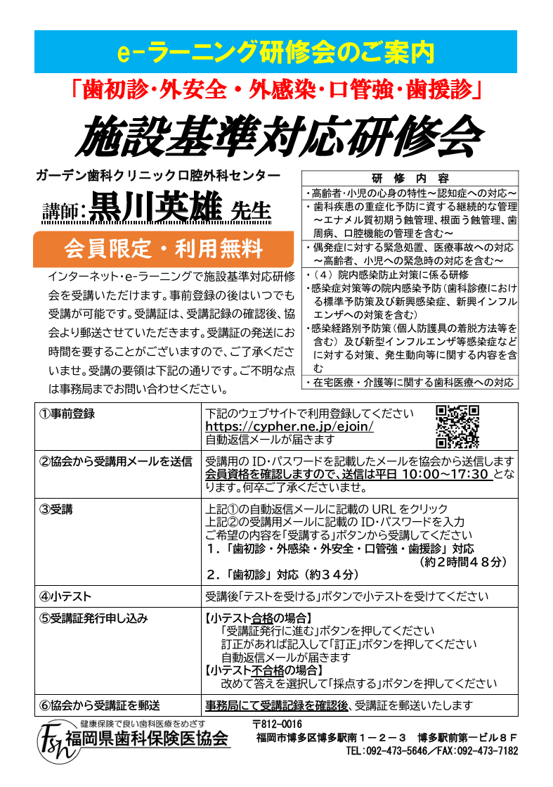 ※e-ラーニングの受講には、当協会会員資格が必須となっております。未入会の先生で受講を希望される場合は、当協会までご連絡ください。