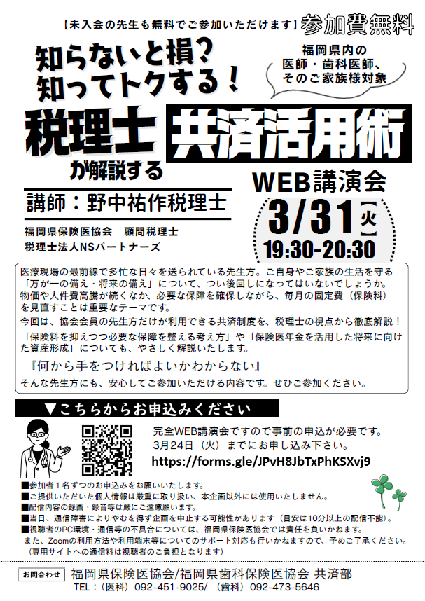 ※完全WEB講演会です。事前にお申し込みください。