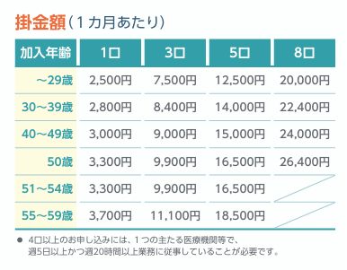 - 開業医…8口 勤務医…3口 (給付額:入院1口8,000円/1日、通院1口6,000円/1日)